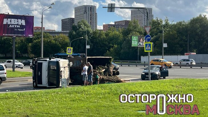 Грузовик опрокинулся на севере Москвы. Об этом сообщает пресс-служба столичного Дептранса.