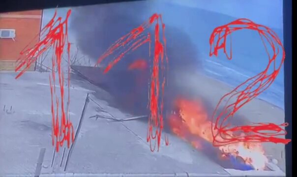 На ролике видно, как воздушное судно обрушивается на землю около водоема, задевая частный дом. От удара лопасти обламываются, а затем начинается мощный пожар, сопровождающийся густым столбом дыма.
