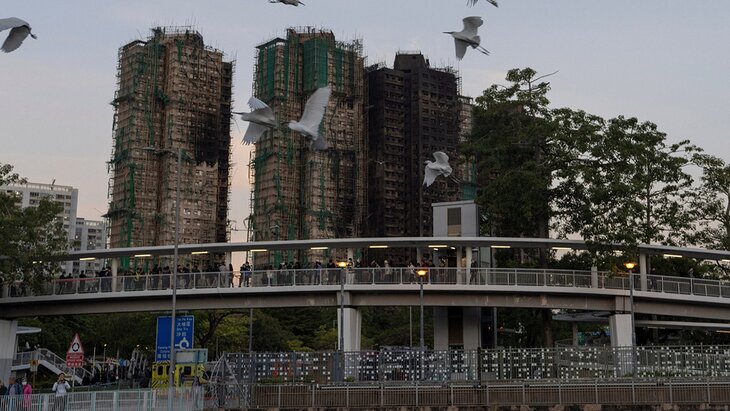 Пожар в гонконгском жилом комплексе в районе Тай По произошел 26 ноября. Отмечалось, что пламя перекидывалось и на соседнее здание, где проживало около 4 тысяч человек.