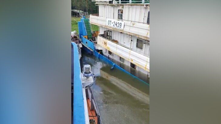 ЧП произошло вечером 8 июня. Судно-толкач столкнулось с подводным препятствием и получило повреждение корпуса. В результате инцидента теплоход был частично подтоплен.