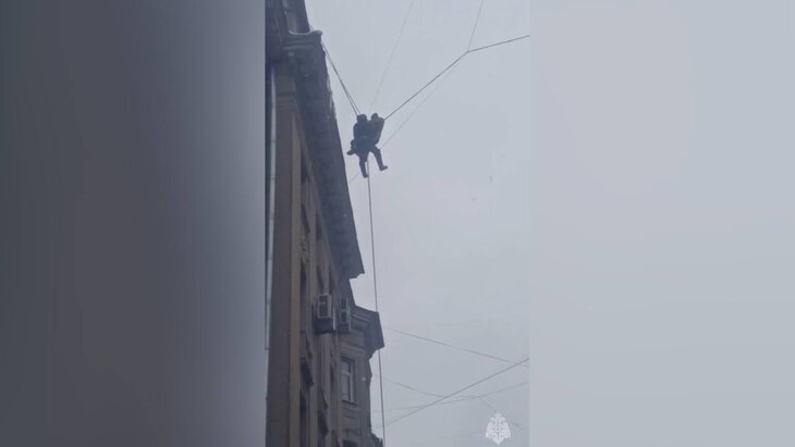 Спасатели в Санкт-Петербурге помогли спуститься рабочему, который сорвался с крыши и повис на проводах, сообщает ГУ МЧС России по городу.