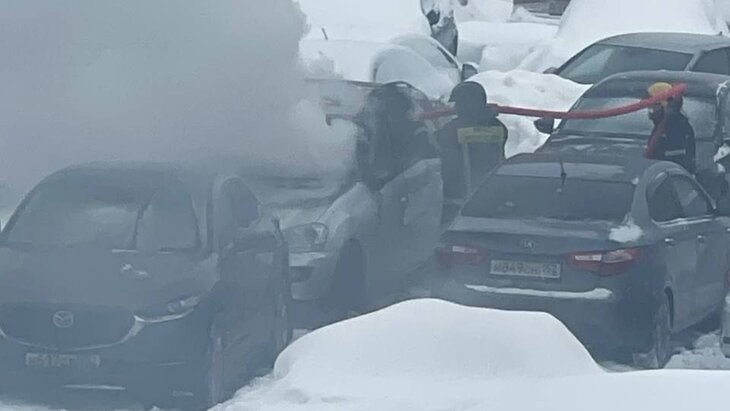 Ранее на парковке, расположенной на улице Теплый Стан, произошел пожар. После ликвидации возгорания в одной из машин были найдены тела двух мужчин.