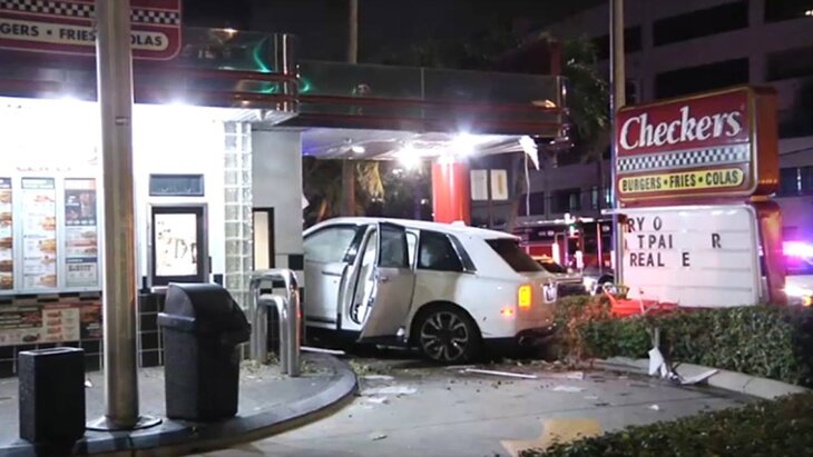 Rolls-Royce Cullinan стоимостью примерно 400–500 тысяч долларов угнал и разбил о стену ресторана быстрого питания Checkers 21-летний американец Малик Паттерсон, передает New York Post.