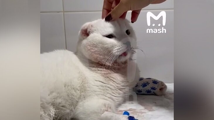 После падения кот получил травмы. Очевидцы оперативно доставили его в ветеринарную клинику.