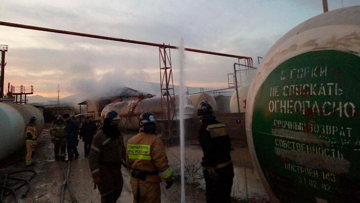 Цистерна с сжиженным газом загорелась в поселке Новый Хушет 16 февраля. Для ликвидации возгорания было задействовано 63 специалиста и 19 единиц спецтехники от РСЧС, в том числе 26 сотрудников и 7 машин от МЧС.