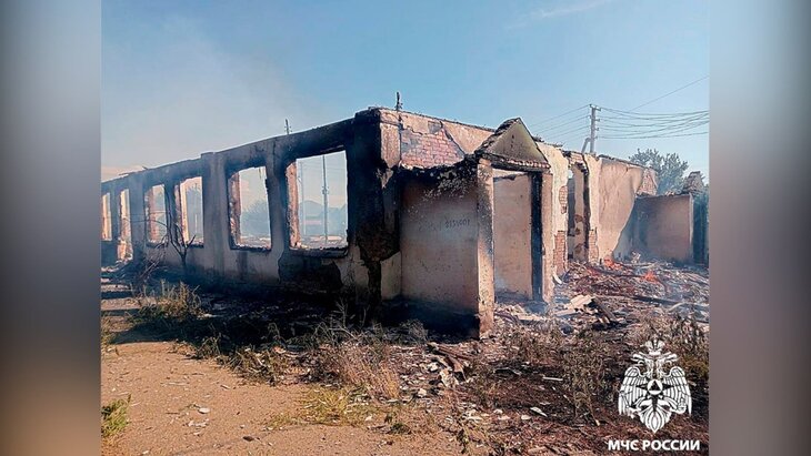 Здание бывшего инкубатора загорелось в четверг, 17 июля. Пламя распространилось на площади в 1,3 тысячи квадратных метров. При этом сухая растительность горела на площади в 1 гектар.