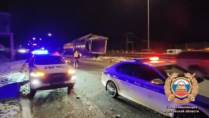 В ГАИ добавили, что в настоящее время на данном двухполосном участке левая полоса в направлении Ростова-на-Дону перекрыта, движение организовано по правой полосе.