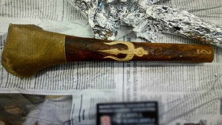 По данным ведомства, таможенники нашли в посылке тибетскую ритуальную флейту Канглинг (Ганлин). Находку обнаружили с помощью рентгена. Во время досмотра сотрудники достали завернутую в газету полую кость с вырезанным трезубцем и авторским клеймом, добавили там.
