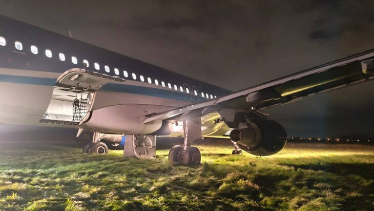По его словам, самолет выкатился за пределы взлетно-посадочной полосы, сев в поле. Мужчина также добавил, что перед этим лайнер около 4 часов кружил над Санкт-Петербургом.