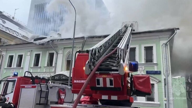 "Происходит загорание на 1, 2 этажах и чердачном помещении здания", – говорится в сообщении.