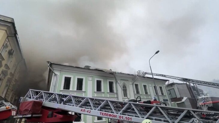 По словам источника, когда начался пожар, внутри здания находились рабочие.