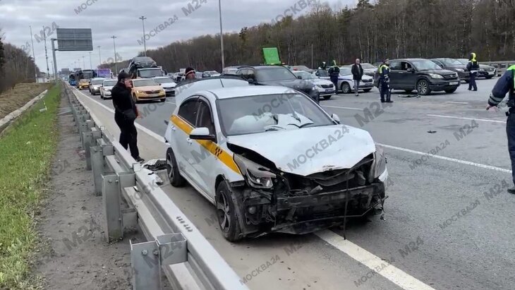 О массовой аварии на 23-м километре Киевского шоссе стало известно утром 24 апреля. Со слов очевидцев, столкнулись не меньше 6 авто, в их числе 3 машины такси.