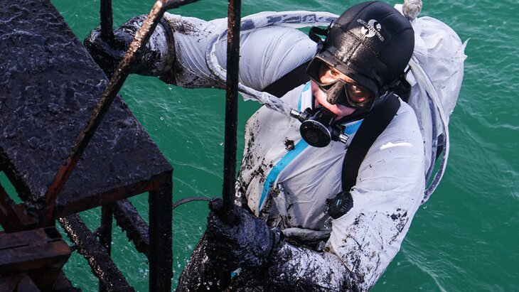 Разлив мазута в районе Керченского пролива произошел в декабре 2024 года из-за крушения танкеров "Волгонефть-212" и "Волгонефть-239". Суммарный ущерб экологии от ЧП составил 84,9 миллиарда рублей.