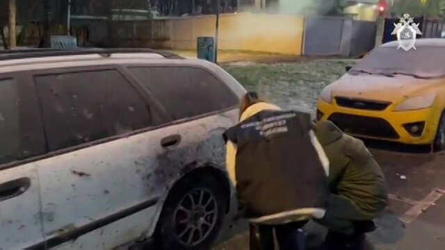 На видео запечатлена улица, где произошел взрыв, и части подорванного автомобиля. Кроме того, показана работа следователей и криминалистов ведомства, которые осматривают место происшествия.