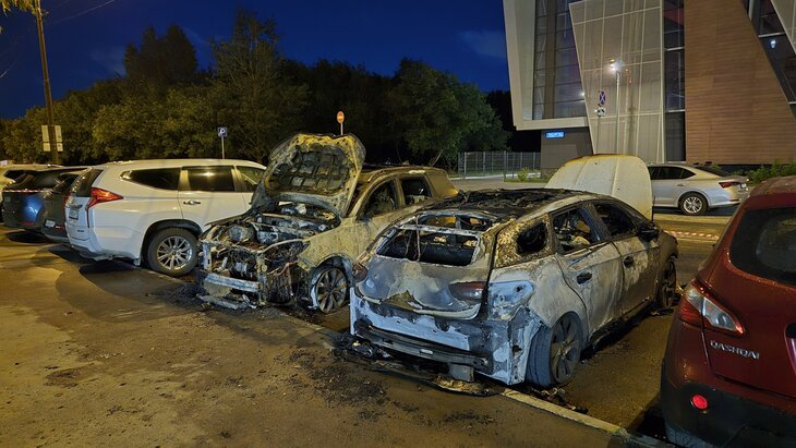 По предварительной информации, в результате возгорания пострадал еще один автомобиль. Также отмечается, что одна из сгоревших машин принадлежит службе каршеринга.