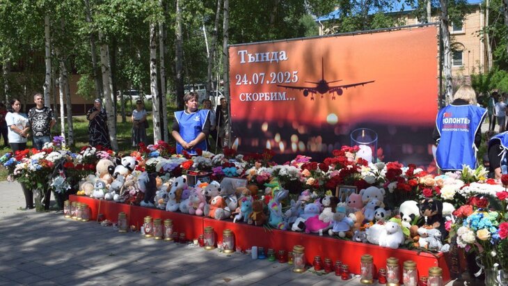 Стихийный мемориал в память о жертвах разбившегося самолета Ан-24 появился в Тынде, рассказал мэр города Сергей Гуляев в своем телеграм-канале.