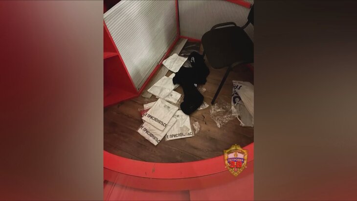 Злоумышленник отогнул защитную штору на стойке информации и продажи сувениров, после чего раскидал по полу футболки и сувенирную продукцию.