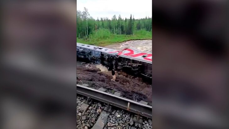 Предварительной причиной происшествия является подмыв полотна в результате обильных осадков.