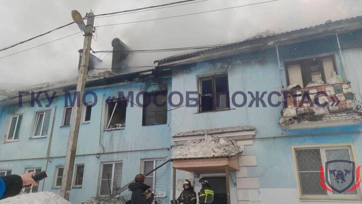Взрыв газа, за которым последовал пожар, произошел в двухэтажном жилом доме в подмосковной Икше 27 февраля. На втором этаже вспыхнула трехкомнатная квартира, а также кровля дома по всей площади.