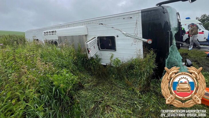 Автобус опрокинулся в Кигинском районе на 35-м километре автомобильной дороги Малояз – Верхние Киги 27 июля. Предварительно, 38-летний житель Удмуртии, управляя автобусом Higer не справился с управлением и допустил съезд в кювет с последующим опрокидыванием. В салоне находились 40 пассажиров.