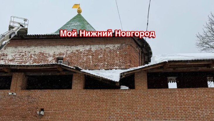 РегионыЧасть крыши обрушилась над стеной Нижегородского кремля