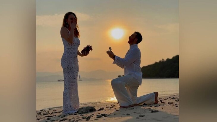 Таким образом он прокомментировал фото, которое опубликовал в соцсетях. На этом кадре он стоит на колене и преподносит жене кольцо.