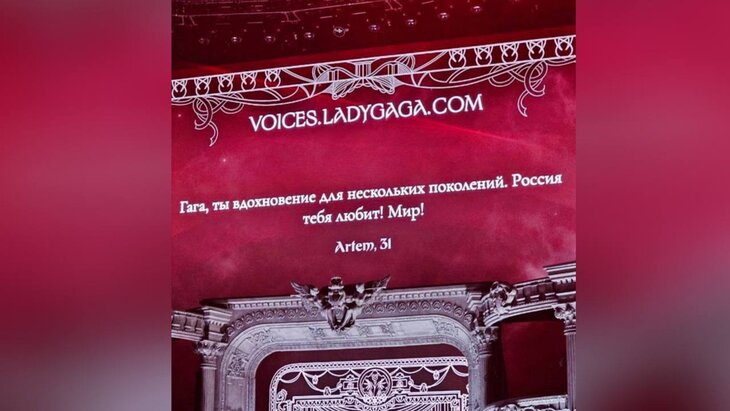 Перед концертом Леди Гаги во французском Лионе на экране появилось обращение к певице на русском языке. СМИ опубликовали фотографию, которая была сделана во время выступления исполнительницы.