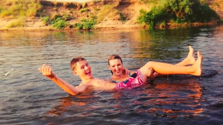 Как оказалось, знаменитости знакомы почти с детства. На снимке Дубцова держит на руках Шаляпина. Молодые артисты стоят в озере.