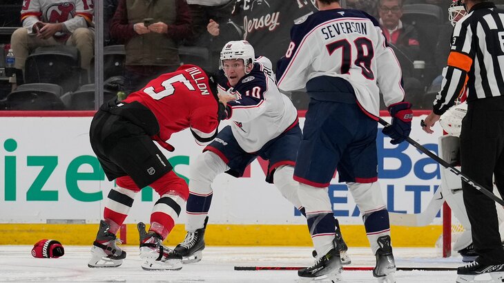 СпортФорвард "Коламбуса" Воронков нокаутировал хоккеиста "Нью-Джерси"