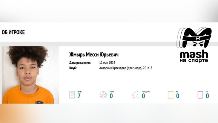 Академия московского "Спартака" приняла в команду мальчика 2014 года рождения по имени Месси Жмырь. Соответствующая информация появилась на сайте Московской фередации футбола.