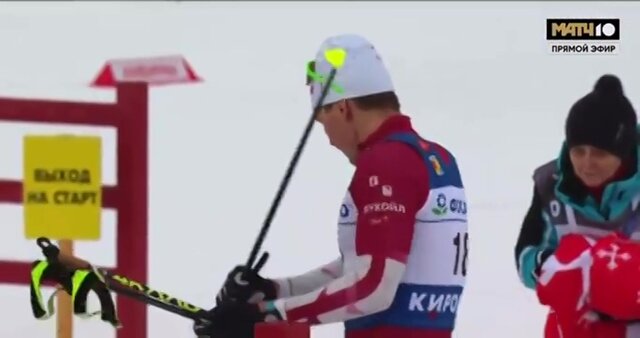 Большунов занял последнее место в полуфинальном забеге. На последнем повороте он уперся лыжей в лыжника Александра Бакурова и потерял равновесие. После того как олимпийский чемпион финишировал, он подъехал к сопернику и толкнул его в спину. В результате последний упал вместе с бортиком, а затем – захромал и ушел с трассы, держась за ногу.