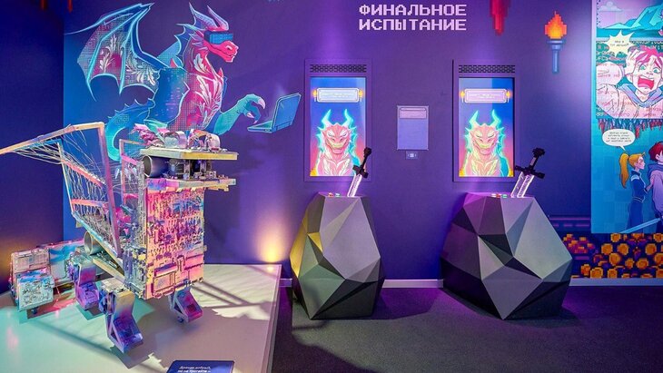 Маршрут по павильону "Цифровые технологии Москвы" выстроен так, что посетители могут плавно погрузиться в атмосферу приключений и почувствовать себя персонажами компьютерной игры. На сцене площадки также проходят мастер-классы и лекции.