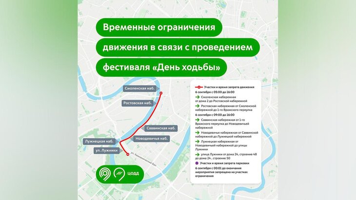 В частности, с 05:00 до 16:00 будет закрыт проезд по Смоленской набережной от дома 2 до Ростовской набережной, а также по Ростовской набережной от Смоленской набережной до 1-го Вражского переулка.