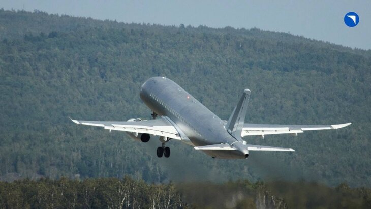 Лайнер оснащен отечественными системами и агрегатами. Его первый полет продлился около часа под управлением экипажа летно-испытательного комплекса ФРС.
