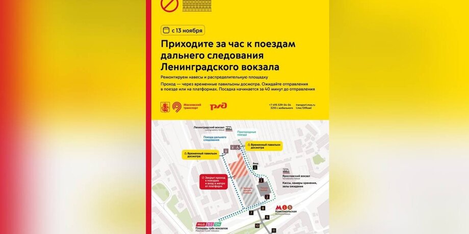 ТранспортСхема прохода к поездам изменится на Ленинградском вокзале с 13 ноября