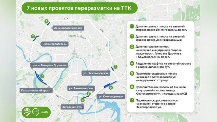 Центр организации дорожного движения (ЦОДД) разработал 7 проектов по переразметке дорог на Третьем транспортном кольце (ТТК), рассказал заммэра по вопросам транспорта и промышленности Максим Ликсутов.