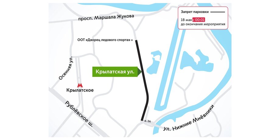 По Крылатской улице временно нельзя будет проехать 18 мая в связи с проведением велогонки "Cyclingrace: Крылатские". В частности, ограничения затронут участок от дома 2А до остановки "Дворец ледового спорта" с 08:00 до 15:00. Кроме того, с 00:01 до окончания мероприятия там будет запрещена остановка машин.