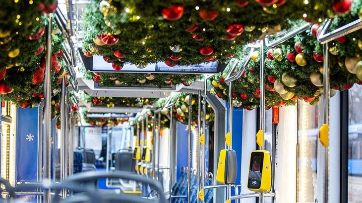 В целом на городские маршруты вышли 24 тематических поезда метро, 50 электробусов с гирляндами, 115 автобусов в новогодней оклейке, 62 трамвая, включая новый маршрут на Трифоновской улице и маршрут Т1. Также были украшены исторический трамвай "Татра" и трамвай "Витязь-Москва" с хвойными гирляндами в салоне.