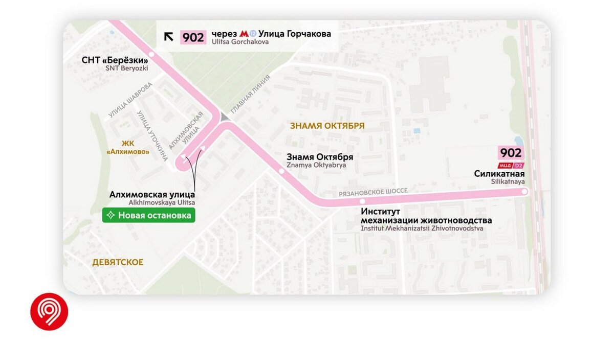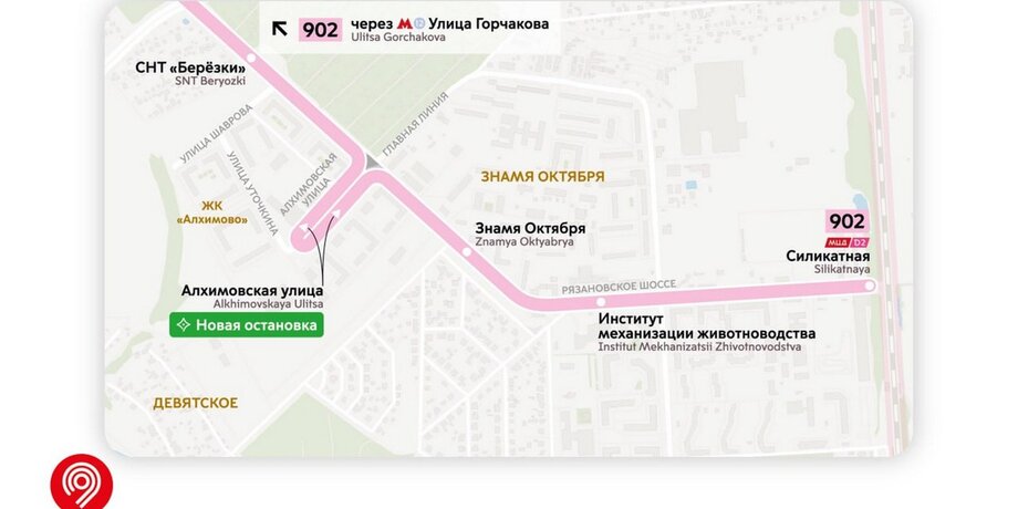 На маршруте № 902 появится новая остановка. Она расположится рядом с ЖК "Алхимово". Благодаря этому жители смогут быстрее добираться до станции МЦД Силикатная.