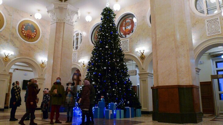 В МЖД отметили, что благодаря нарядным украшениям пассажиры чувствуют атмосферу праздника. В залах ожидания и вестибюлях крупных вокзалов появились ели. Самая большая из них установлена на Киевском вокзале.