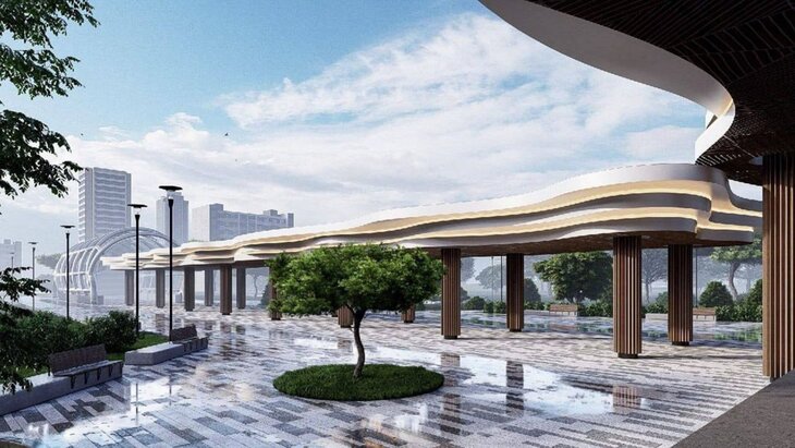 На данный момент ведется работа по устройству всех пяти навесов, сделанных из высокопрочной стали с облицовкой алюминием. Сначала специалисты выполнили бурение и заливку бетона для установки свай, после чего приступили к монтажу конструкций и крыш, на которых появятся световые зенитные фонари.