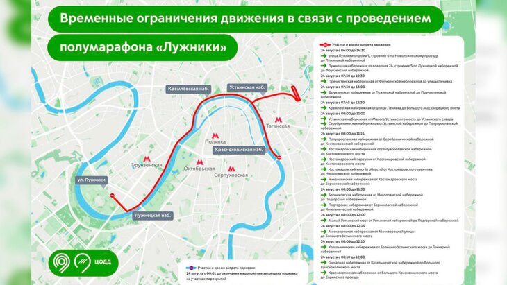 ТранспортЦентральные набережные закроют 24 августа из-за полумарафона "Лужники"