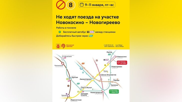 На время ограничений можно будет воспользоваться бесплатными автобусами КМ, а также построить маршрут через МЦД-4. Жителей и гостей столицы просят выбирать альтернативные маршруты заранее. Также на станциях будут дежурить сотрудники ЦОМП.