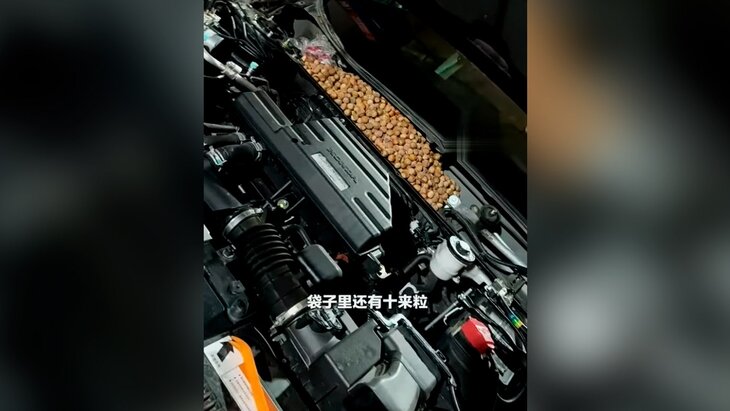 Житель китайского города Цзиси заглянул под капот и нашел там 18 килограммов фундука, передает Oddity Central.