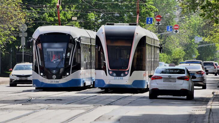 ТранспортТрамваи № 36 и 37 задерживаются на Зеленом проспекте в Москве