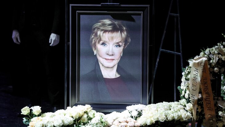 Гроб с телом актрисы был установлен на основной сцене театра, возле него расположили венки, которые направили друзья семьи и творческие коллективы.