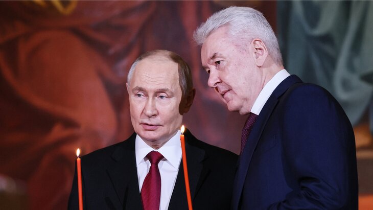 ОбществоПутин и Собянин посетили пасхальную службу в храме Христа Спасителя