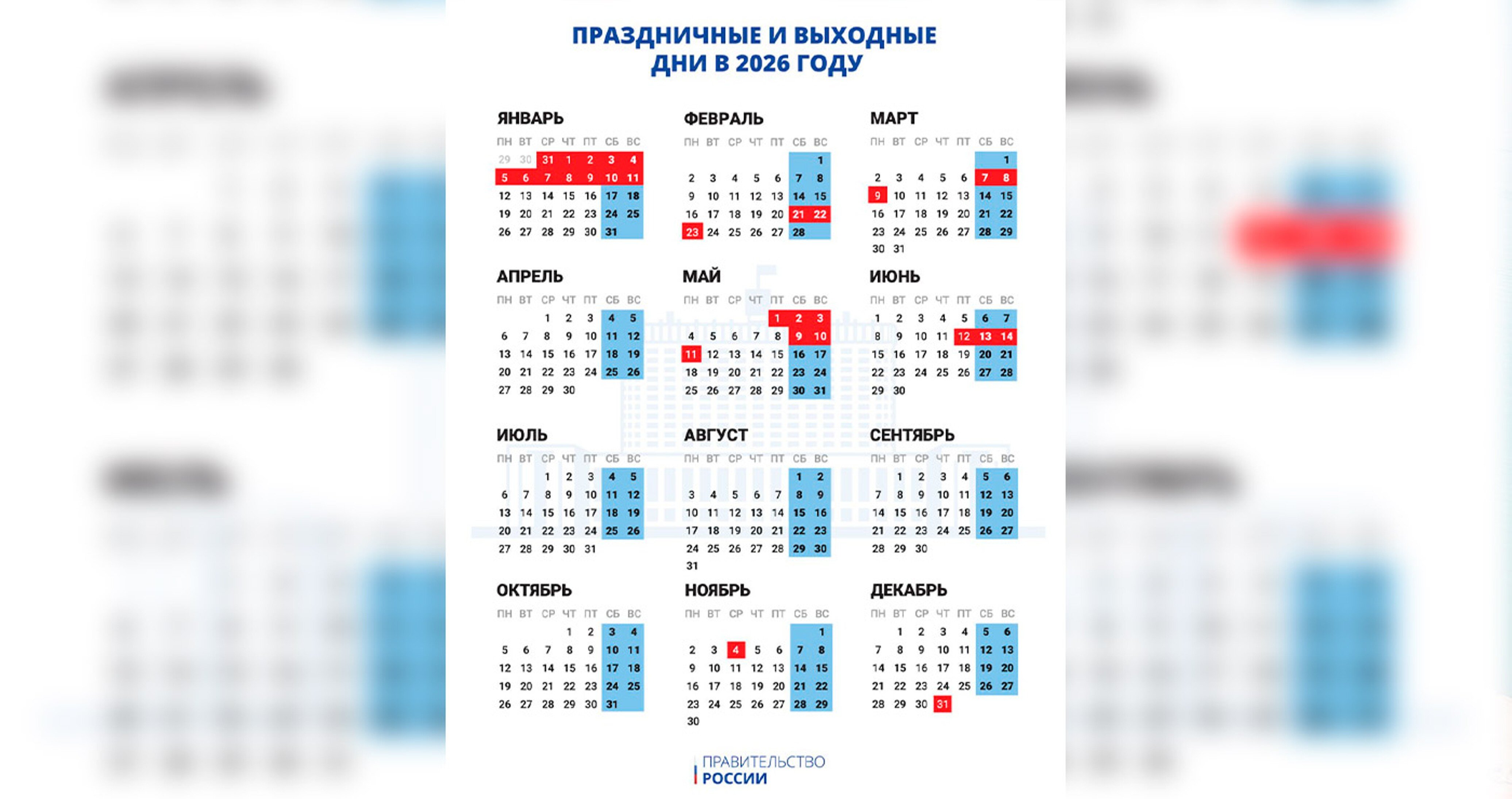 Председатель правительства России Михаил Мишустин подписал постановление о праздничных и выходных днях в 2026 году. В соответствии с документом новогодние праздники продлятся 12 дней, сообщила пресс-служба кабмина.