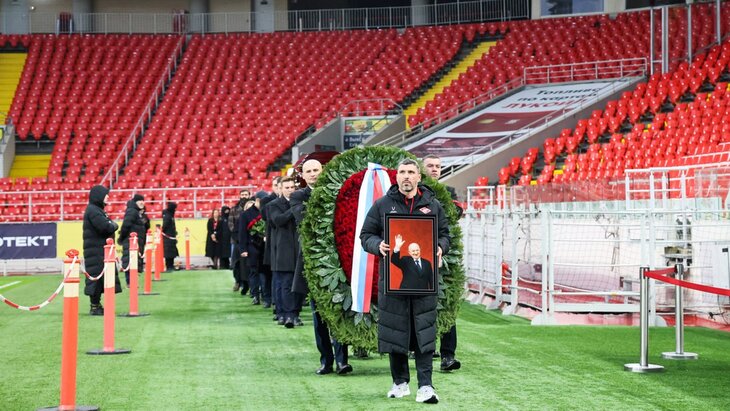 Церемония проходит на стадионе "Лукойл Арена". Ближайшие матчи Кубка России и Российской Премьер-лиги (РПЛ) будут посвящены памяти Симоняна. Игры будут начинаться с минуты молчания.