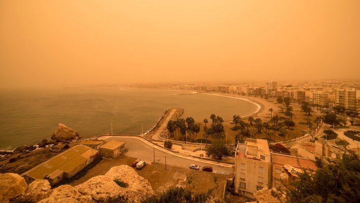 "Перенос пыли из Северной Африки накрыл регион и изменил цвет неба", – говорится в сообщении.
